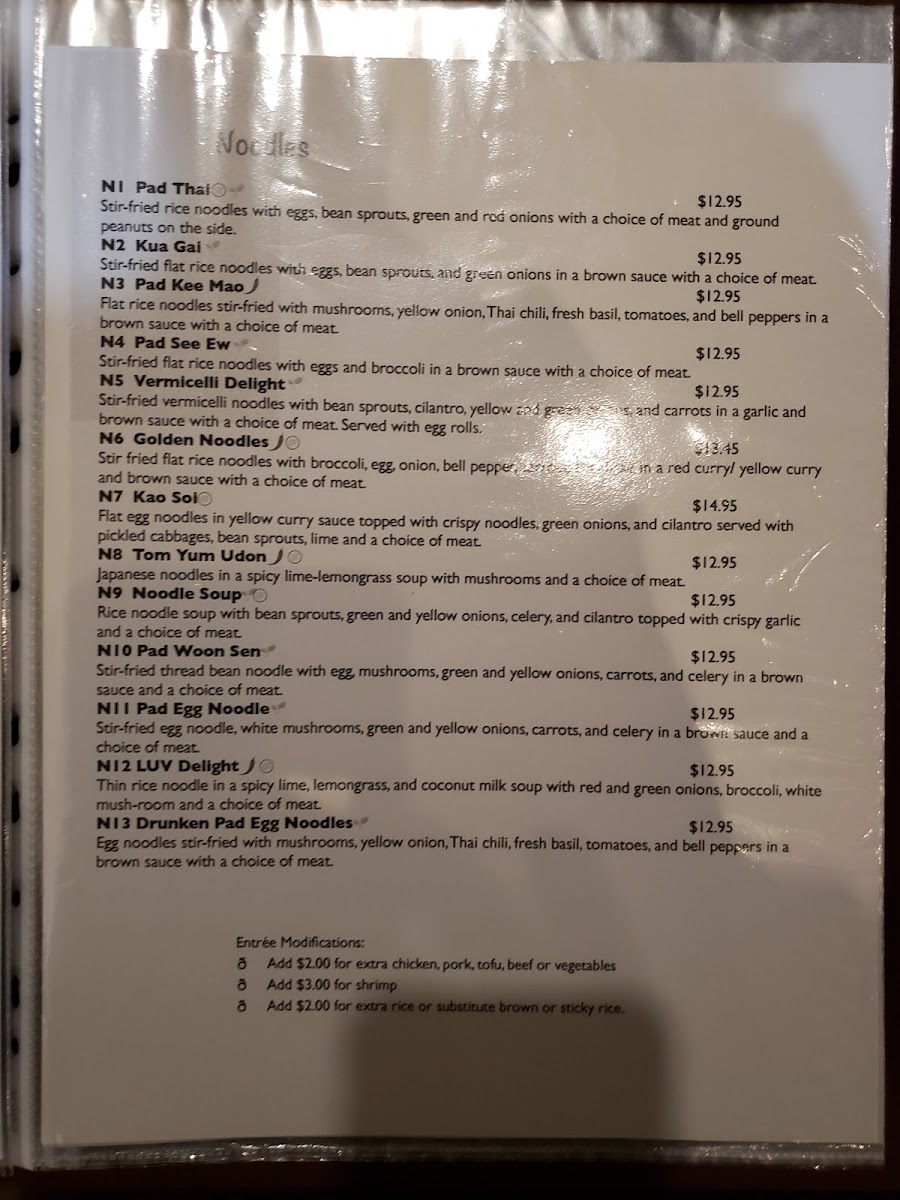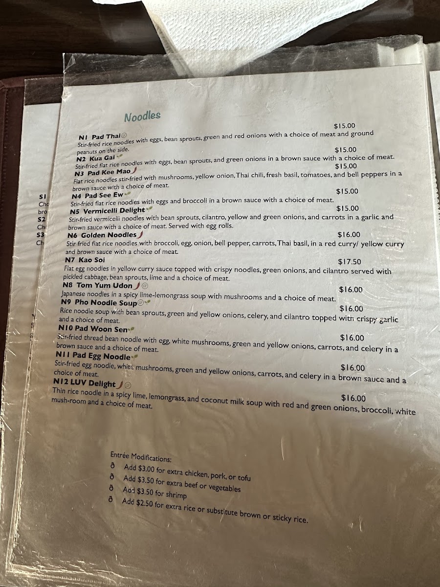 Welcome to Luv Thai Cuisine, a gem nestled in South Austin at 5207 Brodie Ln. This Thai restaurant offers a delightful journey through authentic flavors with a menu bursting with delectable options. Guests can indulge in a variety of curries, like the creamy Red and Green Curries, each priced at an attractive US$17.50. For noodle lovers, dishes such as the iconic Pad Thai and Golden Noodles, both at US$17.00, are must-tries that receive rave reviews for their exquisite taste and texture.